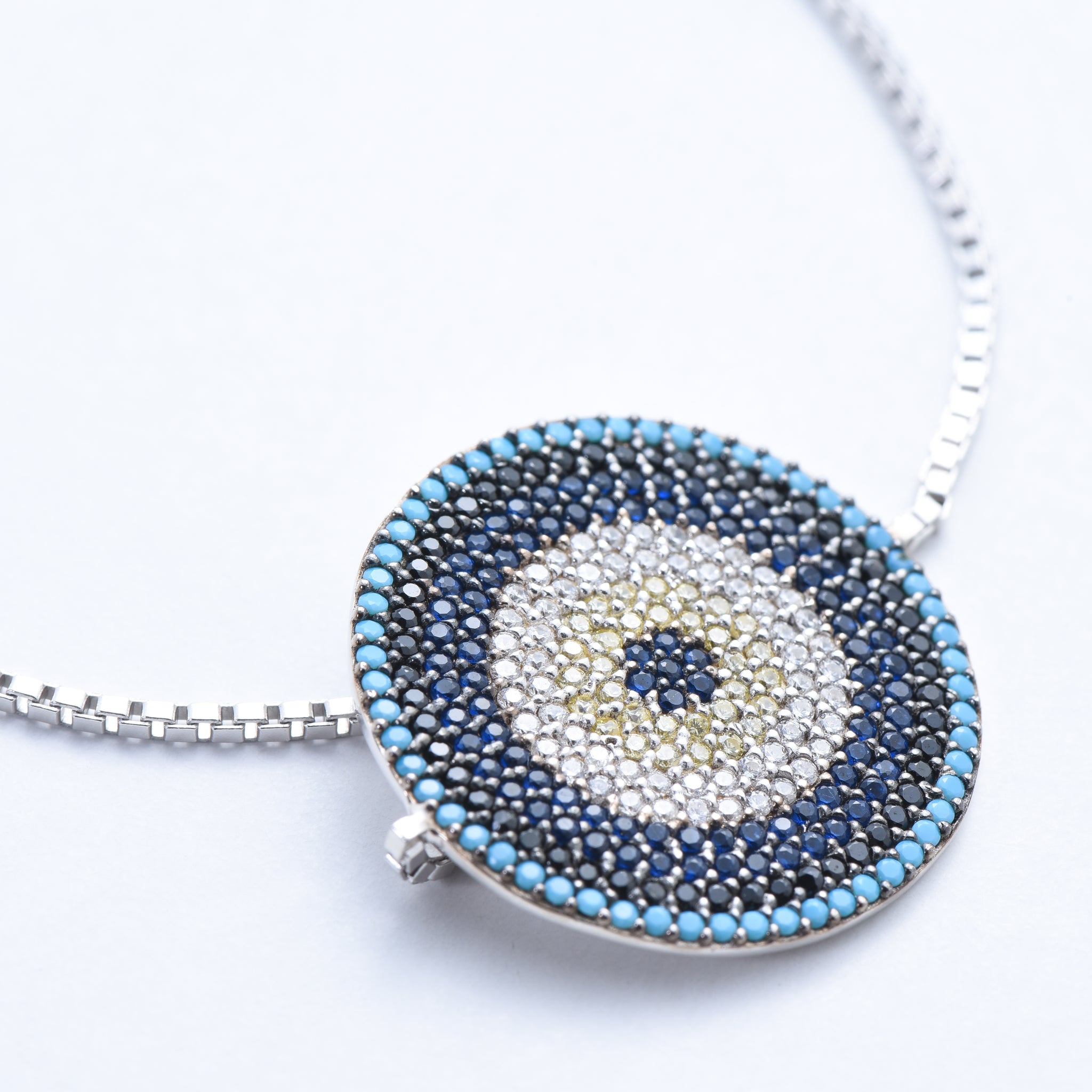 Sterling silver 925 round cut evil eye bracelet with adjustable size
