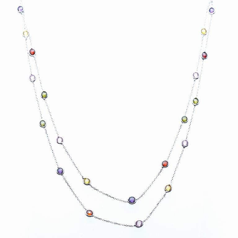 Tiffany Inspired , Colorful Crystal Sterling Silver Necklace